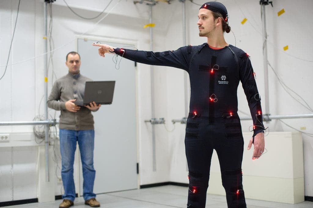 El investigador Myroslav Bachynskyi y su equipo han desarrollado un sistema que consta de un traje equipado con elementos ópticos que emiten luz, cuando la persona que lo viste realiza una secuencia de movimientos, como los de mover los brazos para jugar a los videojuegos.