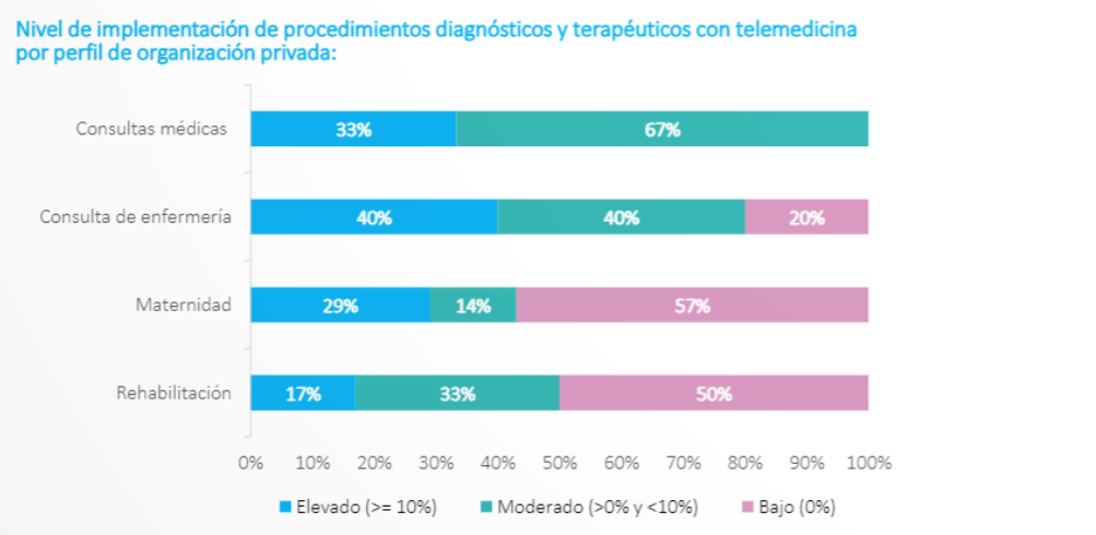 El informe sobre la madurez digital de la sanidad privada refleja que más del 80 % de los hospitales privados han conseguido avances en la digitalización al contar con la consulta digital (enfermería y medicina) ya implantada.